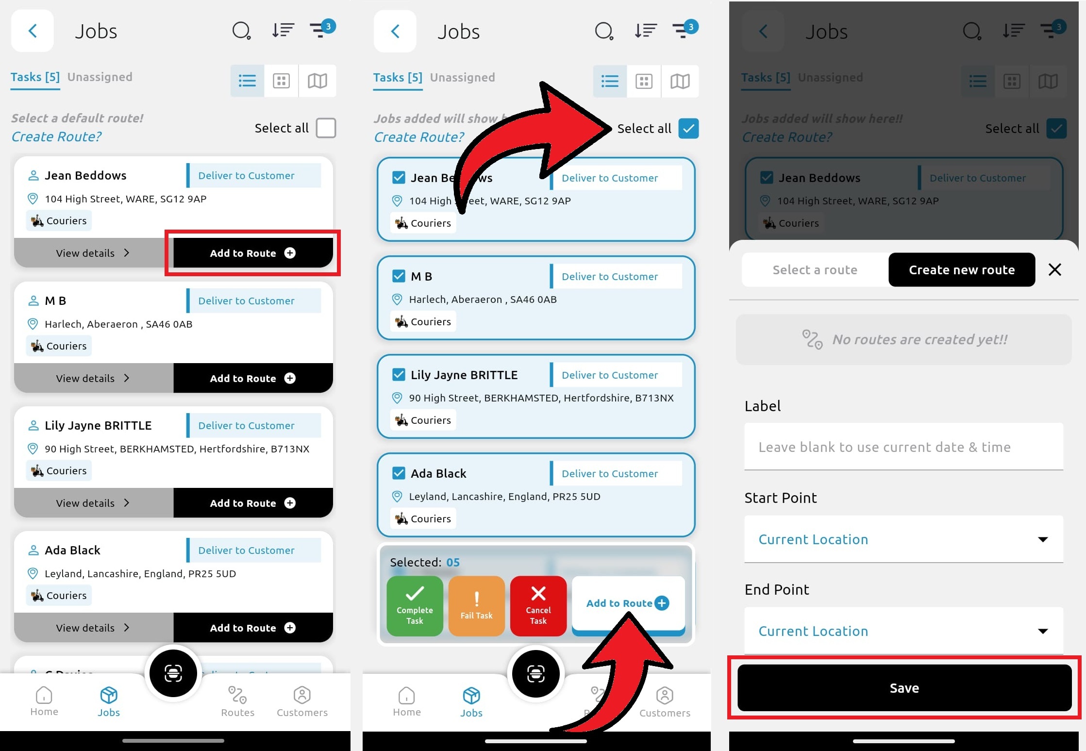 4. Tap Select a route to add task(s) to an existing route or tap Create a new route.